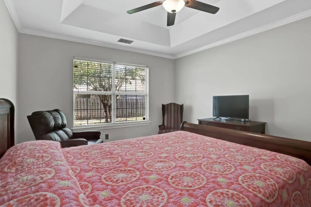 Beautiful 3 bedroom, 2 bath home with split bedroom plan and smooth ceilings throughout. Living area features hardwood floors, vaulted ceiling, and woodburning fireplace. The spacious primary suite offers a tray ceiling and private bath. Kitchen includes stainless steel appliances, pantry, and nearby separate laundry room—washer & dryer stay! Side-entry garage, roof and HVAC only 2 years old. Enjoy a privacy-fenced backyard on a desirable corner lot. Fantastic location close to Truman Parkway, Lake Mayer, and the county Aquatics Center. Move-in ready and full of charm!
