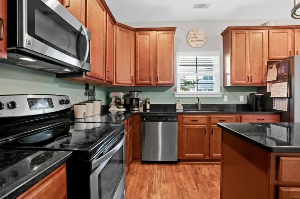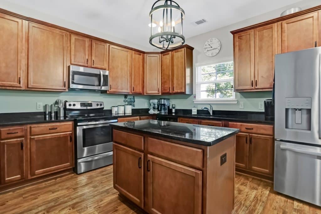 MOVE-IN READY in Richmond Hill! This popular St. Croix plan offers 4 large bedrooms & 3 full baths with an open layout perfect for today’s lifestyle. The living area flows into a beautiful kitchen with granite counters, functional island, and stainless appliances. A downstairs guest suite with full bath is ideal for visitors. Upstairs, the spacious Primary Suite features a tray ceiling, bonus sitting nook/office, spa-like ensuite bath with dual vanities, soaking tub, separate shower, and walk-in closet. Two more bedrooms, full bath, and convenient laundry complete the upstairs. New flooring throughout! Enjoy the fenced backyard and the ease of the irrigation system to keep your yard looking beautiful. Plus, the home boasts new gutters and a 2-year-old roof. Located in the top-rated Richmond Hill schools district, close to the new Aquatic Center being built just blocks away. The Creekside Community offers resort-style amenities—swimming pool, fitness center, playground, dock & bike trails. No flood insurance required! Don’t miss this gem!