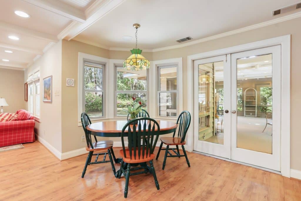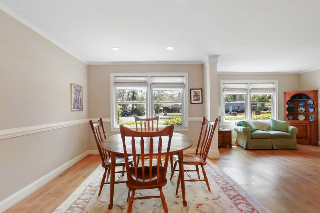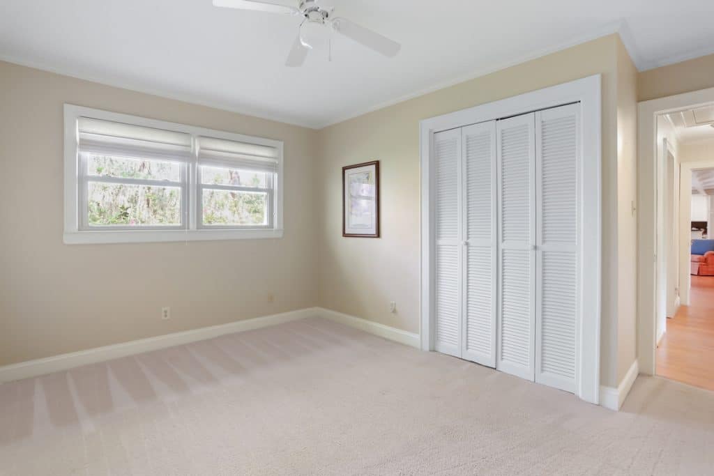 Tucked away on a quiet cul-de-sac in Windsor Forest, this well-appointed home sits on a generous half-acre lot and delivers space, style, and privacy. The open-concept living and kitchen area is ideal for everyday living and entertaining, highlighted by a coffered ceiling in the living room that adds architectural charm. The kitchen is thoughtfully designed with an island and eat-in bar, a separate breakfast area, custom cabinetry, and built-in desk and bookshelves-perfect for work, organization, or homework central. Both bathrooms have been updated, with one featuring a jetted tub with shower and the other offering a spacious walk-in shower. All 3 bedrooms are generously sized with large closets, providing excellent storage throughout. Step outside to a beautifully maintained, private backyard complete with multiple patio areas and an oversized screened-in living space with ceiling fans and electricity—an ideal spot for relaxing or entertaining year-round. Ample parking is available, including space for RV or boat storage. Conveniently located just minutes from LaVida Country Club and Golf Course, which offers designated days for non-member access. This home combines comfort, functionality, and a great location. A rare find with room to live, play, and store it all. No flood insurance required!